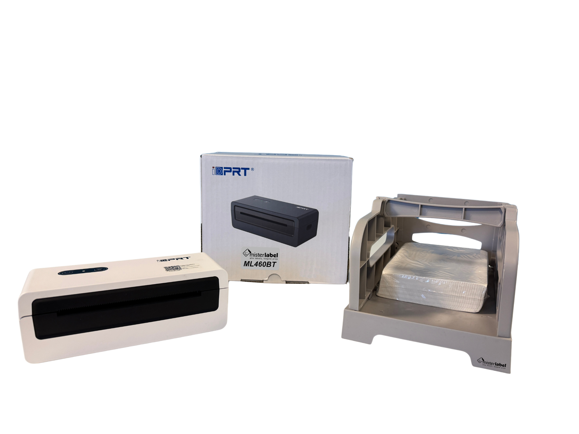 Dit is de Budget Bluetooth Labelprinter ML460 BT van Mister Label. Ons eerste huismerk labelprinter mét felbegeerde bluetooth verbinding, maar werkt uiteraard ook gewoon met een kabel als je dat liever hebt. Werkt op zowel Windows als MacOS. Deze labelprinter is snel, licht en voordelig te koop in onze webshop. Wordt tijdelijk geleverd met 500 gratis fan fold labels.